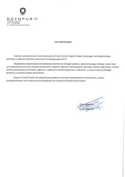 „Współpraca układa się dobrze i pomyślnie zawsze wtedy, gdy po obu stronach jest chęć zrozumienia. Nasza trwa już blisko 6 lat i opiera się właśnie z obu stron o takich ludzi, którzy chcą się rozumieć. Nasze potrzeby firma Infonet Projekt rozumie i w wielu sytuacjach mogliśmy liczyć na sprawne działanie. Mogę z całą pewnością polecić tak sumienny zespół.”