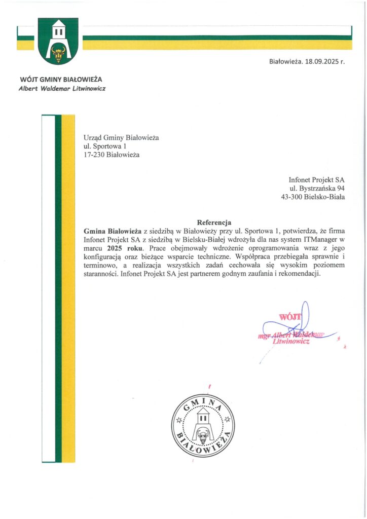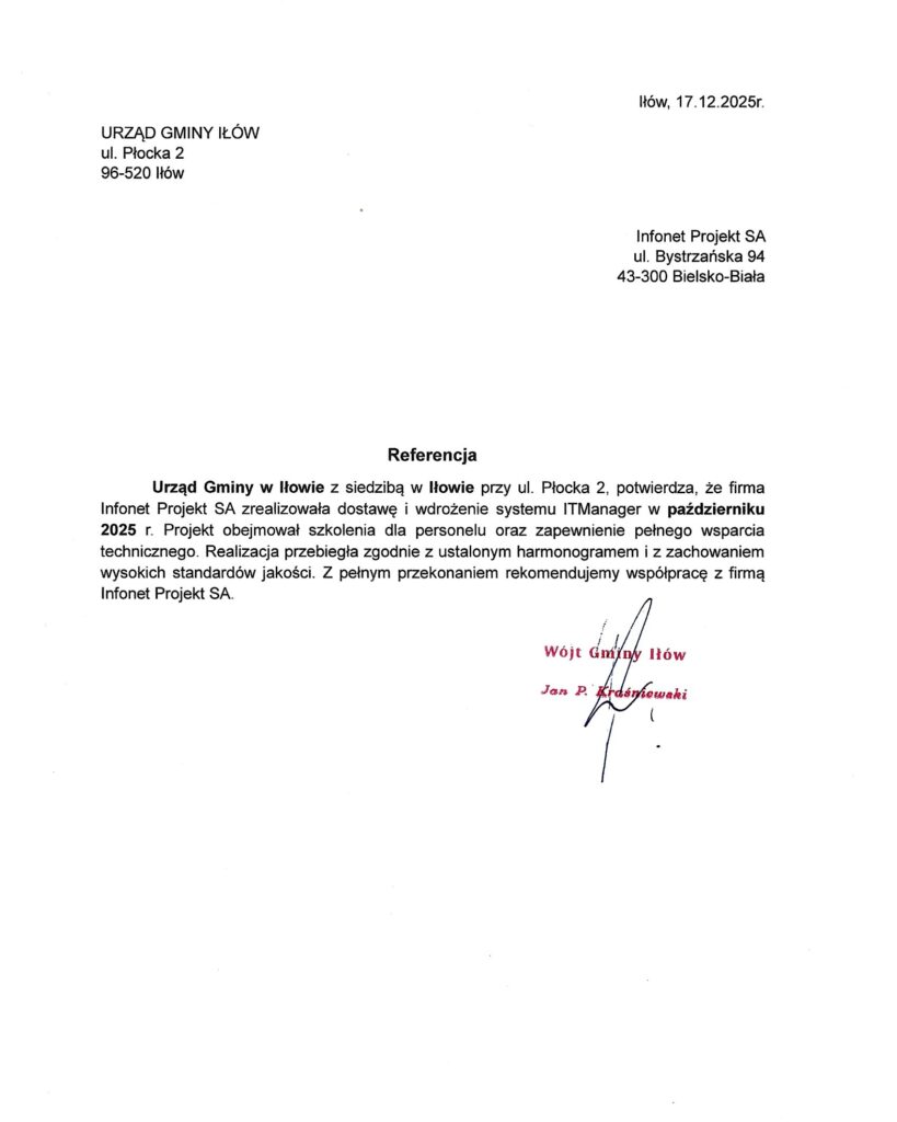 „Współpraca układa się dobrze i pomyślnie zawsze wtedy, gdy po obu stronach jest chęć zrozumienia. Nasza trwa już blisko 6 lat i opiera się właśnie z obu stron o takich ludzi, którzy chcą się rozumieć. Nasze potrzeby firma Infonet Projekt rozumie i w wielu sytuacjach mogliśmy liczyć na sprawne działanie. Mogę z całą pewnością polecić tak sumienny zespół.”